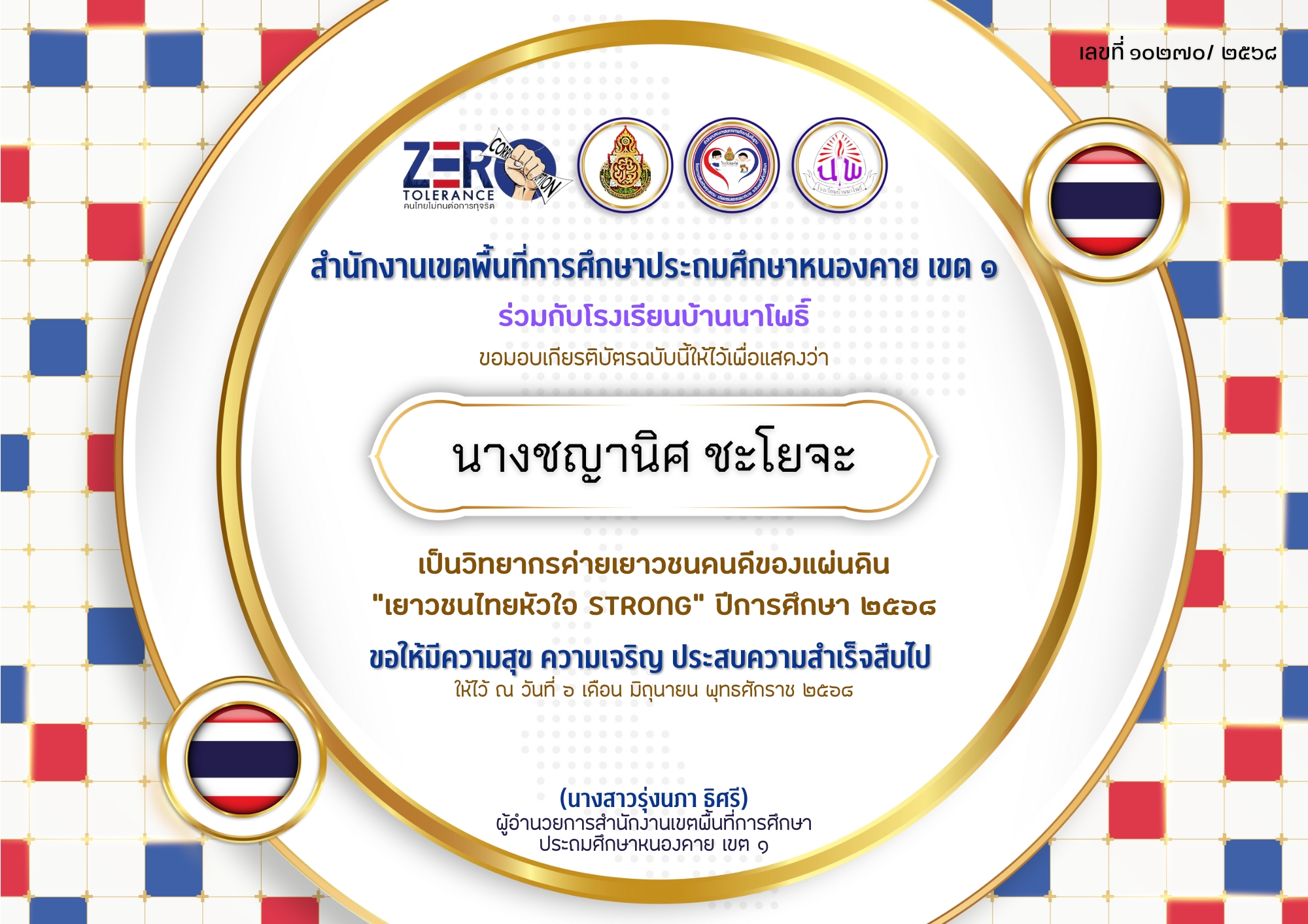 เกียรติบัตรค่ายเยาวชนไทย หัวใจสตรอง